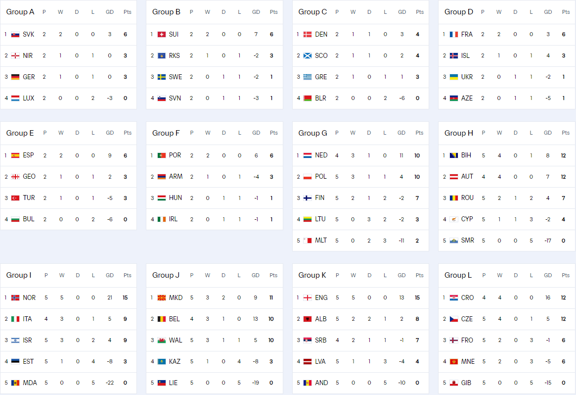 欧洲排名:英国 法国 西班牙和葡萄牙状况良好 意大利和德国处于生与死的最后一轮之战